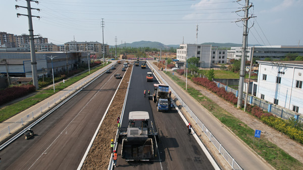 4月11日,公司承建的含山经济开发区承接长三角产业转移基地建设一期项目东区路网天鼓路旧路改造工程开始沥青下面层摊铺。