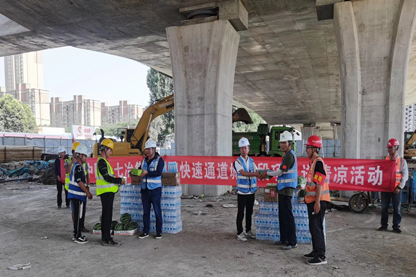 为切实做好一线作业人员户外防暑降温工作,确保项目生产安全稳定,传递公司对广大职工的关心和关爱,6月7日,公司鸭河工区至南阳市中心城区快速通道城区段(非涉铁段)项目部开展“送清凉”活动,为一线施工作业人员送上了防中暑药品、饮用水等物资。
