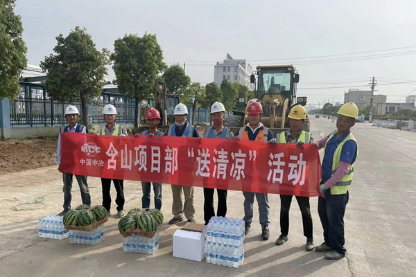 进入六月以后,含山县气温节节攀升,工人们不畏高温酷暑,仍然坚守在生产一线,工作热情丝毫不减,为做好高温天气下安全生产工作,传递项目部对工人的关切,项目部精心筹划,为一线工人们送上了矿泉水、西瓜、防中暑药品等物资。项目部在发放物资时叮嘱提醒大家注意高温环境中的自我保护,在做好安全生产工作的同时注意防暑降温,确保平安度过酷暑。