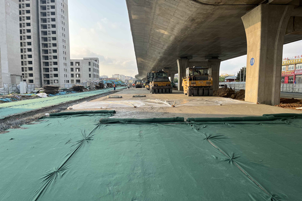 6月27日,公司承建的鸭河工区至南阳市中心城区快速通道(城区段)项目焦柳铁路以北地面辅道开始水稳摊铺。