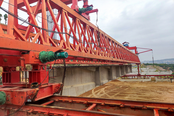 跨连霍高速大桥全长906米,共计24跨,最大跨径70米,最小跨径18米,本次架设的预制T梁为第一跨左幅1#-2 T梁,T梁长度为40米,高度为2.9米,为保证首片T梁架设的顺利进行,项目部积极克服工期紧、任务重、安全风险高、质量要求严等诸多不利因素,多次组织专家论证,不断优化施工方案,合理调配人员、机械、材料,集中力量攻坚T梁架设,全力推进施工进度;认真分析各项技术参数,不断优化架设方案,扎实保障施工质量;对施工作业人员进行详细的安全技术交底,施工过程中管理人员全程旁站值守,及时发现并排除安全隐患。项目部大干快上顺利完成首片T梁架设,为项目全线贯通打下坚实的基础。